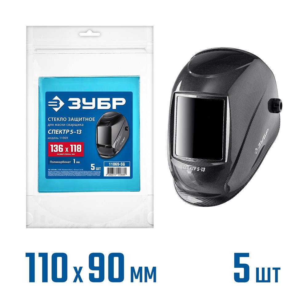 ЗУБР предфильтр, 136х118 мм, поликарбонат, 1мм, для мод.11069, 5шт, защитное стекло для маски сварщика (11069-SG)