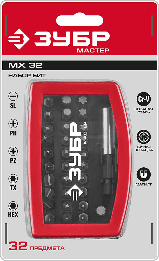 ЗУБР 32 шт, Cr-V, набор бит МХ-32 26393-H32