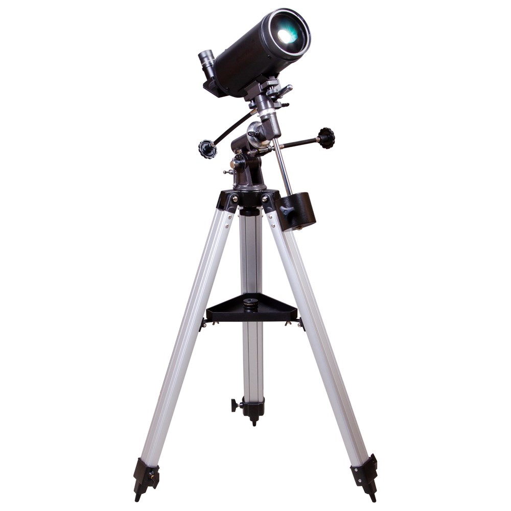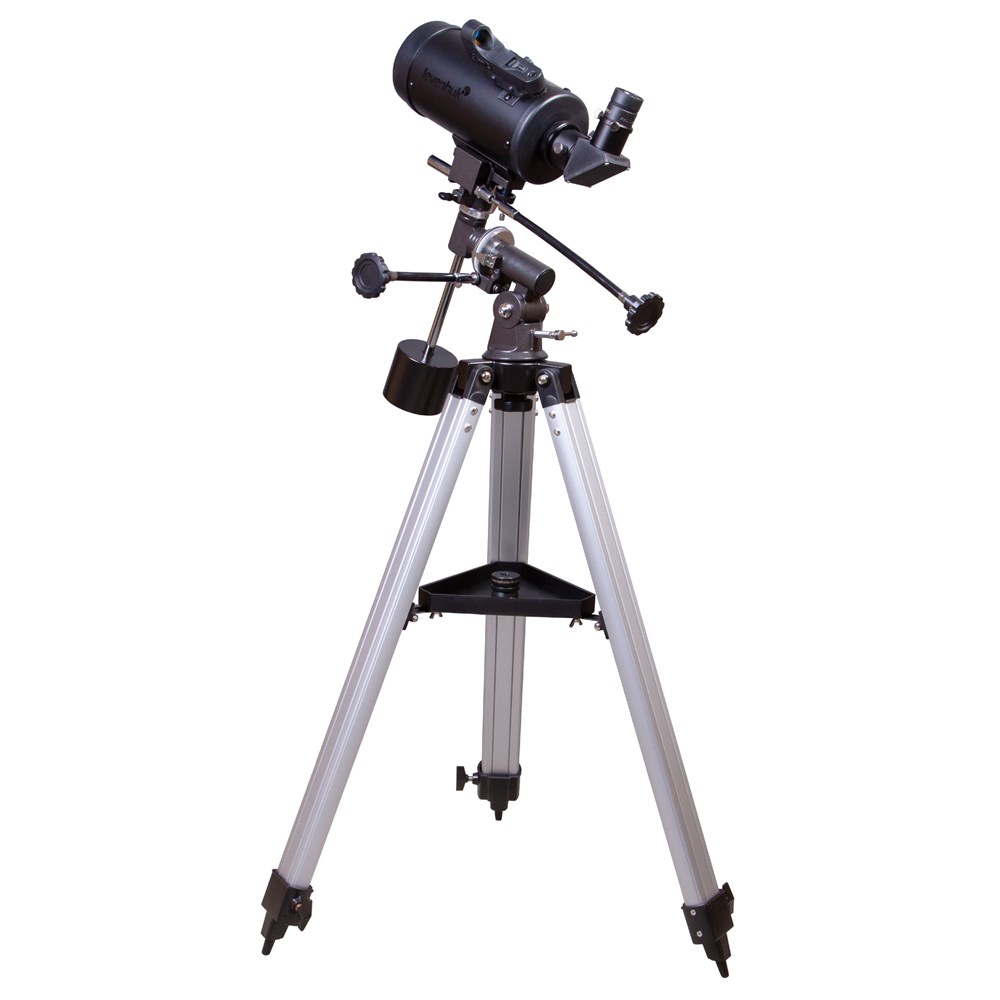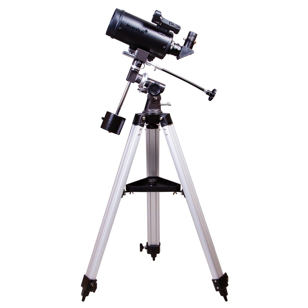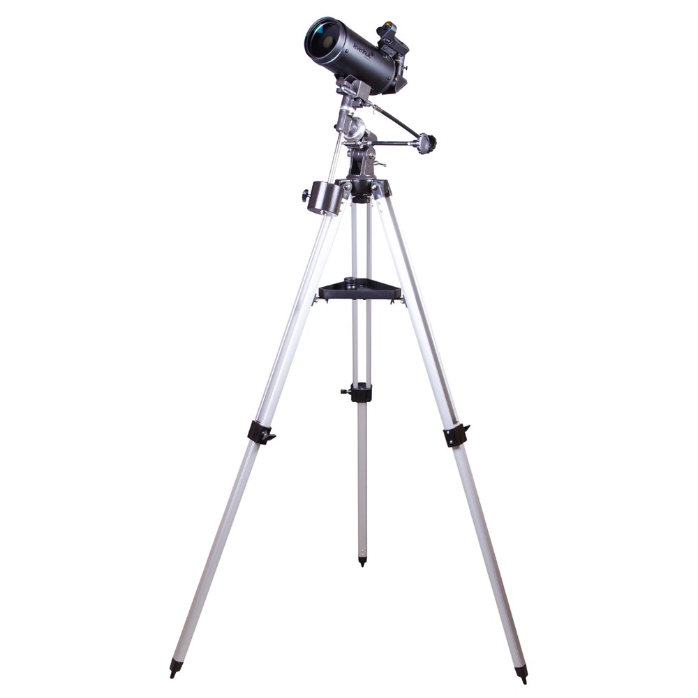 Телескоп Levenhuk Skyline PLUS 90 MAK – это зеркально-линзовый телескоп, который одинаково эффективен при изучении и ближнего, и дальнего космоса. А еще его можно использовать для наземных наблюдений, он легко заменяет собой мощную зрительную трубу. Но все-таки основное его предназначение – астрономические исследования. С помощью телескопа можно рассматривать лунные кратеры, кольца Сатурна, Большое Красное Пятно на Юпитере, погодные изменения на Марсе и Венере. Уран и Нептун различимы, но без деталей. Возможности оптики по отображению дальнего космоса тоже радуют – для наблюдений доступны все объекты каталога Мессье, ярчайшие объекты из каталога NGC, десятки планетарных и диффузных туманностей, двойные звезды и многое другое. Телескоп собран по зеркально-линзовой схеме. А это значит, что в нем сочетаются компактная конструкция и отличные оптические возможности. Этот телескоп можно поставить на лоджию, с ним удобно путешествовать. Из оптических аксессуаров в комплект поставки включены два разнофокусных окуляра и диагональное зеркало. Последнее используется для наземных наблюдений. Для наведения на астрономические объекты применяется искатель с красной точкой. Экваториальная монтировка управляется при помощи ручек тонких движений. Следить за движением небесных тел удобно и легко. Монтировка крепится к алюминиевой треноге. На нее устанавливается лоток для аксессуаров. Высоту ножек треноги можно регулировать.