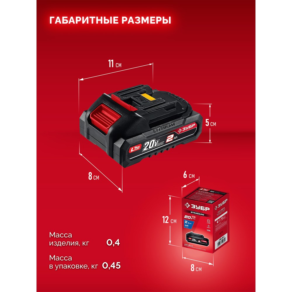 ЗУБР 20 В, 2.0 А·ч, аккумулятор LMS (АКБ-20-2)