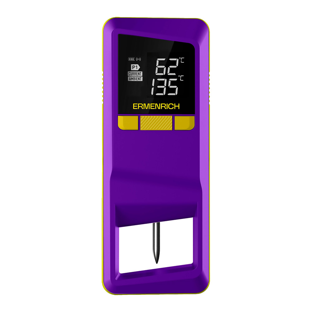 Приготовление идеальных блюд больше не требует усилий: с термометром Ermenrich BBQ GT30 вы за пару секунд и с высокой точностью узнаете, что происходит внутри куска мяса – просто проткните продукт удобным щупом и изучите значения на дисплее. Беспроводной помощник возьмет под контроль и сочность стейка, и нагрев духовки, чтобы вы могли расслабиться и почувствовать уверенность в результате – будь то простой семейный ужин или сложный рецепт для удивления гостей.