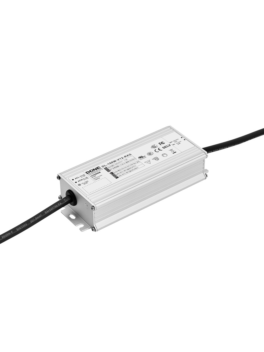 Водонепроницаемый блок питания серии RXG-W со степенью защиты IP67, регулируемой яркостью и постоянным напряжением, работает в диапазоне входного напряжения 90–305 В переменного тока.
