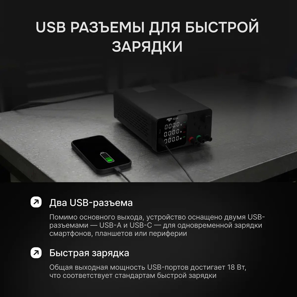 - Автоматический переход между режимами CV и CC