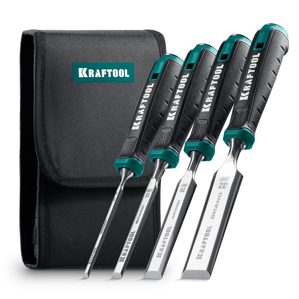 KRAFTOOL GRAND-4 набор стамесок-долот с двухкомпонентной рукояткой, 4 шт