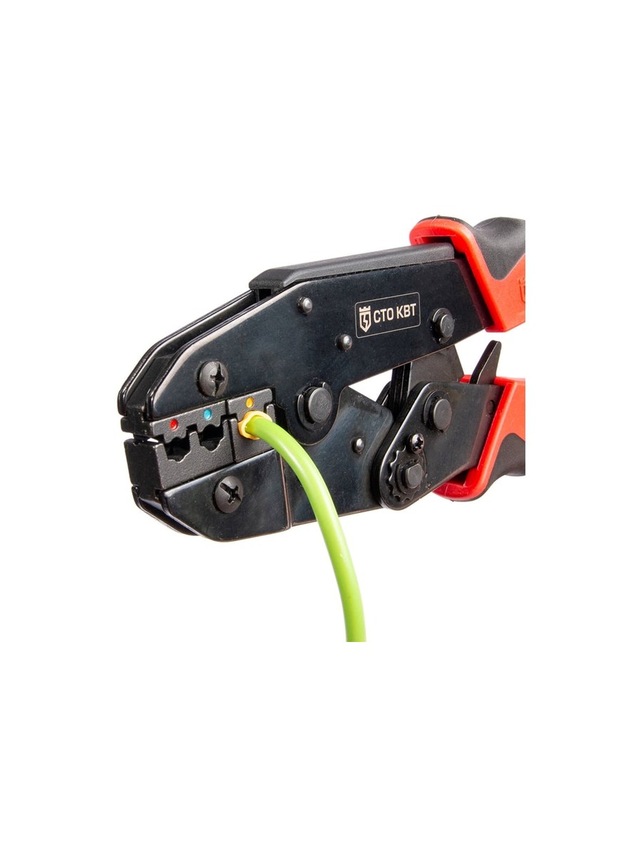 - Опрессовка изолированных наконечников, гильз и разъемов с красной, синей и желтой манжетами