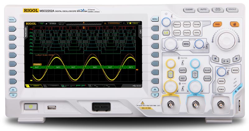 Цифровой осциллограф Rigol MSO2202A отличают низкий уровень шума, расширенные возможности по запуску, возможность синхронизации и декодирования сигналов последовательных шин (I²C, RS-232, SPI и др.).