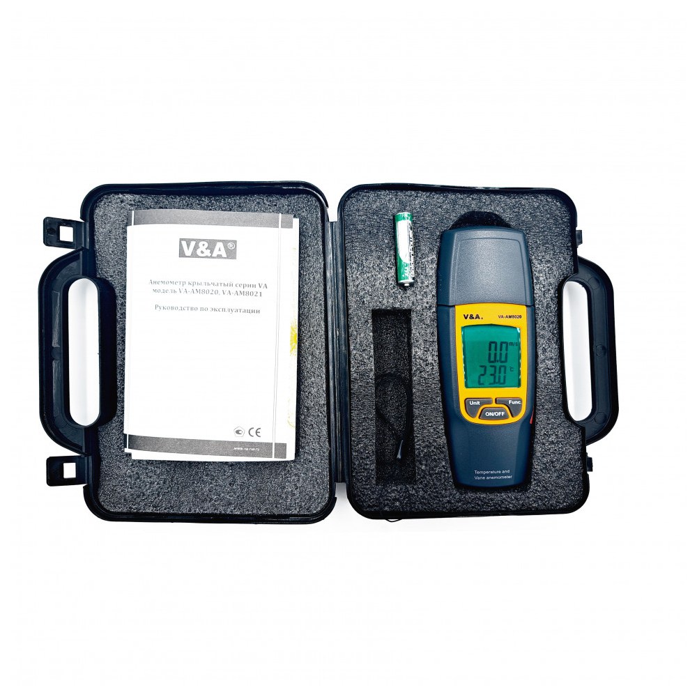Анемометр крыльчатый VA-АМ8020 предназначен для быстрого и четкого измерения скорости воздушного потока и температуры окружающей среды.
