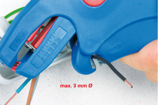 специальный инструмент для снятия изоляции с распространенных гибких и жестких круглых кабелей от 0,5мм2 до 16мм2 (20-6 AWG). А также снятие изоляции с 2-х жильных плоских кабелей с ПВХ изоляцией размером от 0,75мм2 –до 1,5мм2 (18-15AWG). В инструмент встроен боковой резак для проводов диаметром до 3,0мм.Пятипозиционный переключатель настройки обеспечивает оптимальную адаптацию инструмента для проводов с разным сечением жил в указанном диапазоне.